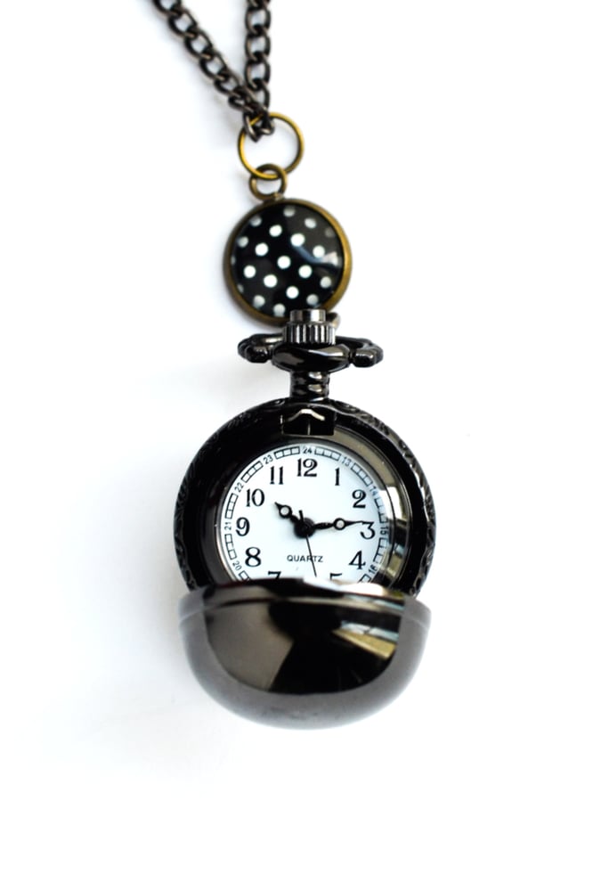 Sautoir-Montre 'Lovely Pois' boule noire, illustration pois